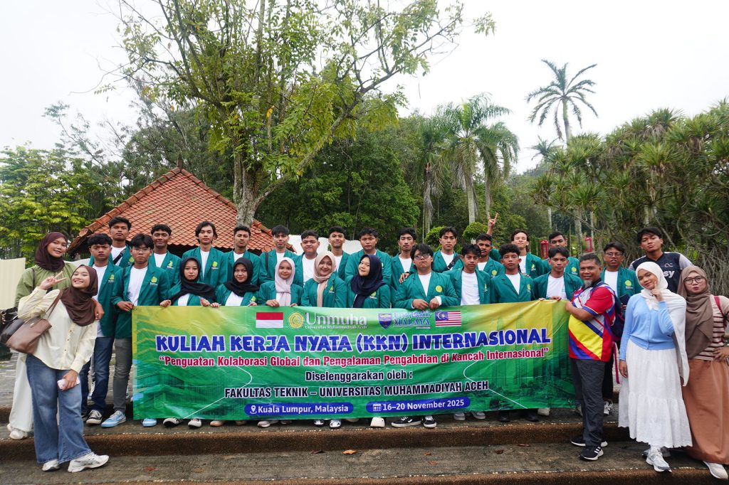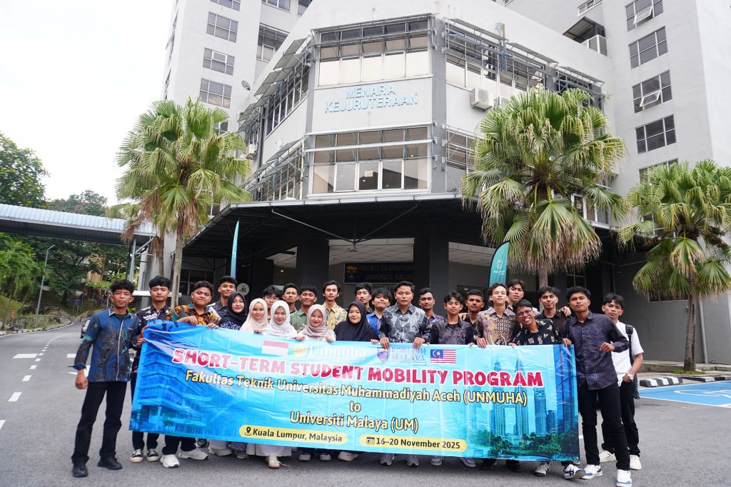 Kuala Lumpur — Sebanyak 25 mahasiswa Fakultas Teknik Universitas Muhammadiyah Aceh (Unmuha) mengikuti Short-Term Student Mobility Program Fakultas Teknik Universitas Muhammadiyah Aceh ke Universiti Malaya, Malaysia, yang dirangkaikan dengan kegiatan Kuliah Kerja Nyata (KKN) Internasional bertema “Penguatan Kolaborasi Global dan Pengalaman Pengabdian di Kancah Internasional”. Kegiatan ini berlangsung di Kuala Lumpur pada 16–20 November 2025.