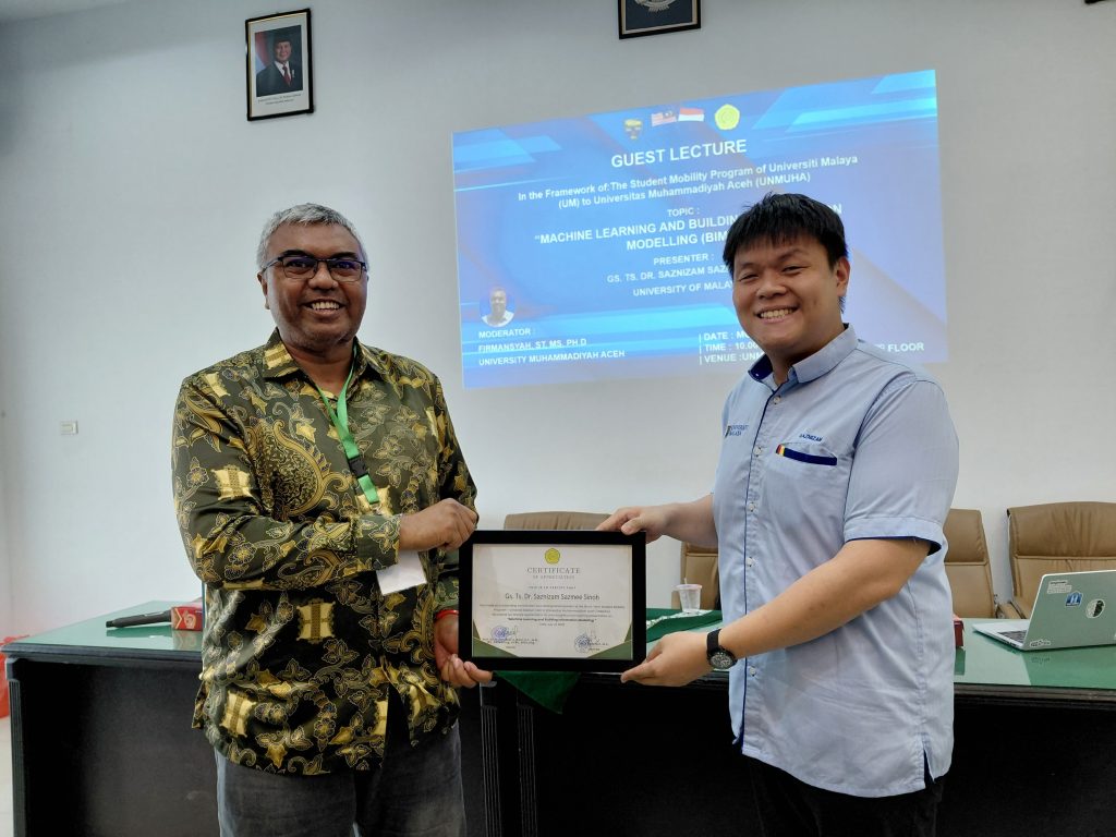 Sebagai rangkaian kegiatan akademik, Fakultas Teknik Unmuha juga menyelenggarakan Kuliah Tamu dengan topik Machine Learning dan Building Information Modelling (BIM). Kuliah ini disampaikan oleh Gs. Ts. Dr. Saznizam Sazmee Sinoh, Senior Lecturer pada Department of Civil Engineering, Universiti Malaya. Dalam pemaparannya, beliau menjelaskan peran dan penerapan teknologi machine learning serta BIM dalam dunia teknik sipil dan konstruksi modern, termasuk tantangan dan peluang pengembangannya di masa depan.